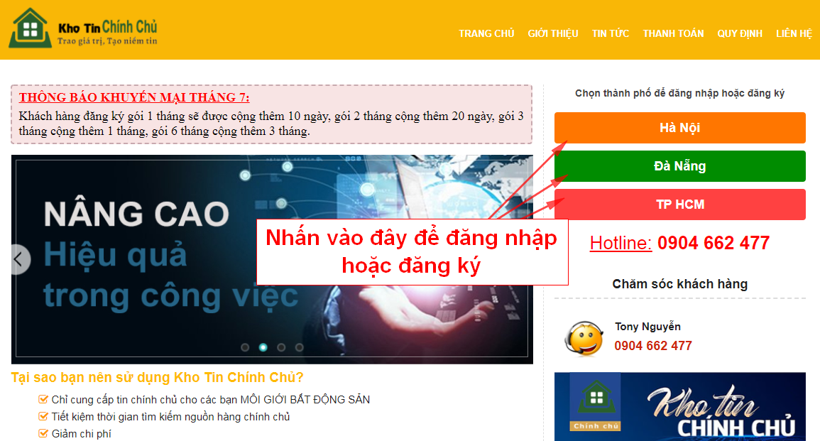 Lưu Ý: Hiện tại Khotinchinhchu.Net Đã triển khai chức năng dành cho chủ nhà, nhà môi giới giữ chủ đăng tin trực tiếp trên hệ thống một cách nhanh chóng vả tiện lợi.
