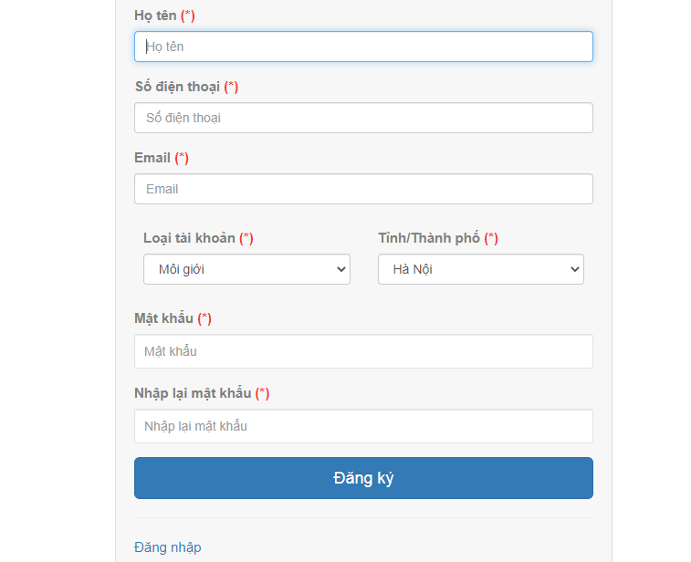 Form Đăng ký thành viên